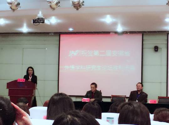 11月11日,白菜官网近20名研究生在副院长唐军教授的带领下参加了由安徽省外国语言文学学会主办、安徽师范大学承办的“第二届安徽省外语学科研究生学术论坛”。参加此次论坛的有来自安徽省8所高校的30多位外语界专家和研究生导师,以及近200名研究生。