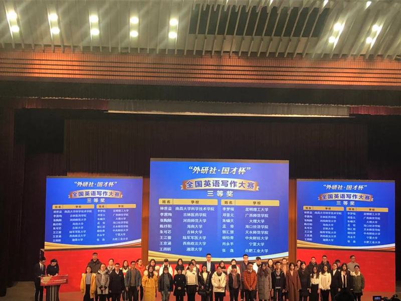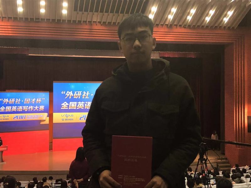 近日,由外语教学与研究出版社主办,教育部高等学校大学外语教学指导委员会、教育部高等学校英语专业教学指导分委员会合办,北京外研在线数字科技有限公司与中国外语测评中心承办的2018“外研社·国才杯”全国英语写作大赛决赛在北京举行。白菜官网管理学院张逸同学与来自全国30个省、市、自治区的选手同台竞技,最终荣获三等奖。