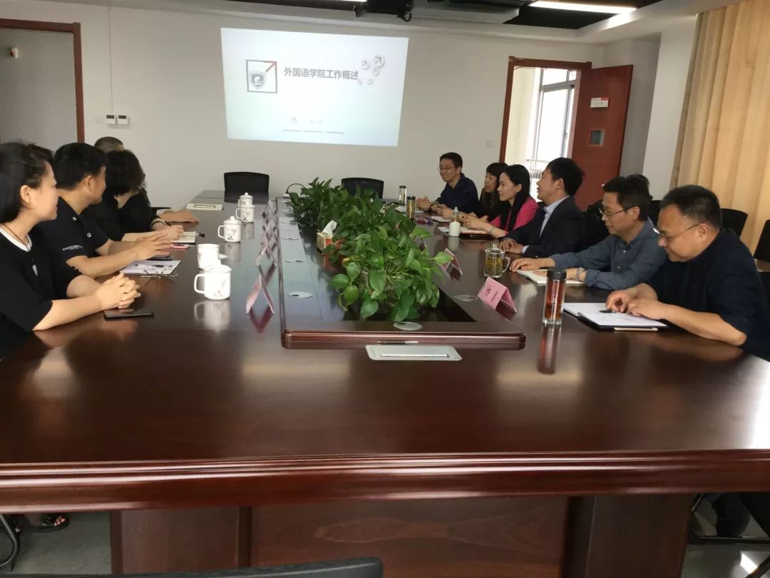 2019年4月26日,新疆农业大学外语学院马琴院长携黄川副院长(援疆干部),新疆维吾尔自治区高校外语教学研究会会长徐世昌教授,大外部王婷主任,英语专业唐彬主任来到002全讯白菜大全翡翠湖校区002cc白菜资讯进行调研,座谈,参加会议的有韩江洪院长、胡丹书记、杨勇副院长、唐军副院长,英专陈曦主任以及刚援疆回来的大外部胡安琳主任。首先韩江洪院长介绍了学院的基本情况,随后对英语专业“以能力为导向的”人才培养模式、大学英语教学研究、研究生培养、师资队伍建设以及学术研究等方面的成功经验做了交流发言,双方就教学、科研的相关问题也进行了探讨,随后,考察成员参观了外语学院同声传译实训室、 各系部教研室、党建活动室、以及心理咨询室等。最后,双方代表希望今后在大学英语教学改革、专业建设、党建工作等各个方面能有更加深入的交流和合作。
