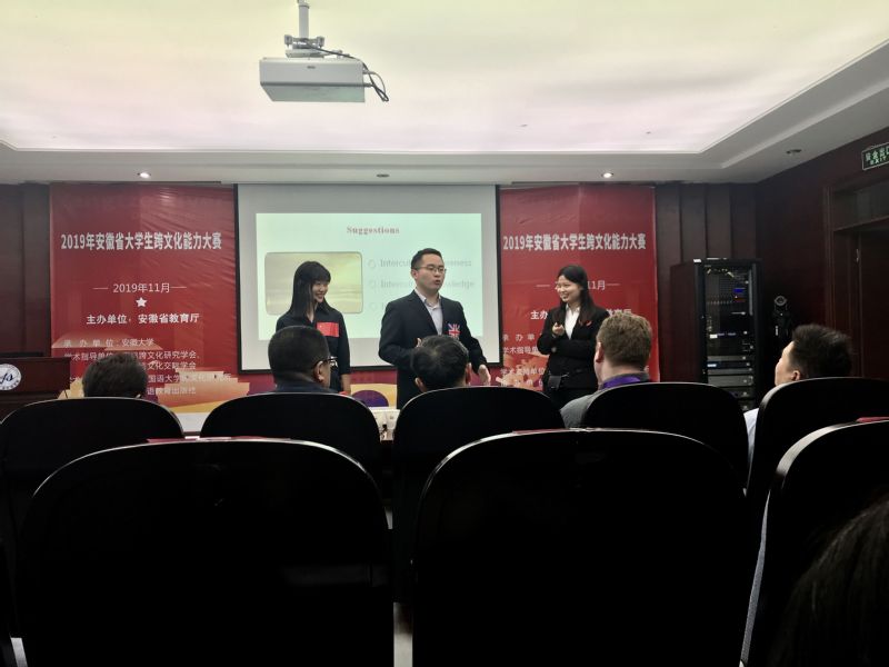 2019年安徽省大学生跨文化能力大赛于11月9-10日在安徽大学成功举办,来自全省25所高校的参赛团队展开激烈角逐。白菜官网选派的跨文化能力团队首次参赛,并在白菜官网刘丽老师的精心指导下获得二等奖的好成绩。展现了白菜官网大学生过硬的语言技能和跨文化能力,凸显了白菜官网英语教学改革的成效。三位参赛队员分别是2016级英语(国际贸易)专业的史晓丹、2018级微电子科学与工程专业的崇雯玥和2018级高分子材料与工程专业的郭魏楠。