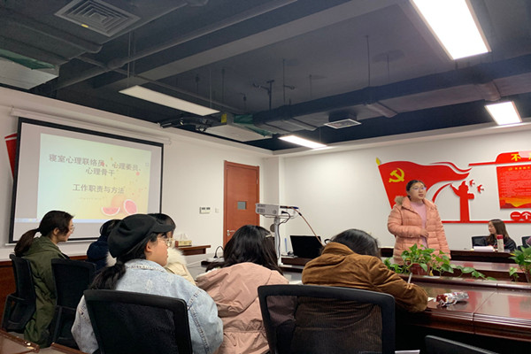 培训伊始,各寝室心理联络员就班级心理委员、心理协会学生干部和寝室心理联络员的工作职责展开讨论,并由赵雰雰老师对同学们的讨论内容进行点评。随后,赵雰雰老师通过事例直观地阐释了朋辈辅导的重要作用,并介绍了应对突发事件的有效途径。最后,赵老师介绍了大学生心理健康的标准,为学生心理骨干科学、有效、顺利地开展工作奠定理论基础;明确了心理辅导的原则,并要求心理联络员做到三个贴近和三个关注,在日常的学习生活中为同学提供力所能及的帮助。