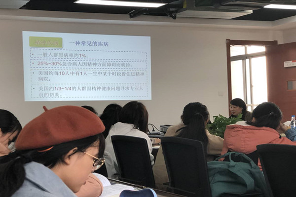 培训中,罗美红老师指出,由于当代大学生情感复杂,缺少家人、父母的陪伴,自身心理问题的解决经验较少等原因,大学生心理障碍发病率逐年上升,抑郁症等心理疾病高发,自残自杀等事件不断发生。在此背景下罗美红老师主要从精神病性障碍、情感性障碍等方面为我们具体讲解了分裂症、抑郁症、狂躁症、焦虑症、恐惧症和强迫症等具体病症。并以抑郁症为例,引入乔任梁等大家耳熟能详的人物,加深了同学们对此类心理问题的理解。此外,罗美红老师还从身边讲起,在保护案例中人物个人隐私的前提下,引导学生正确识别心理问题,并明确指出,心理问题不容小觑,如若未及时发现并加以治疗,后果不堪设想。