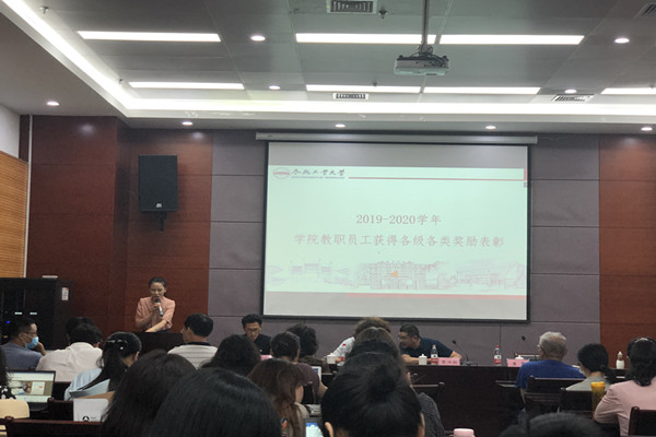会后,学院还举行了2020年教师节表彰大会和荣休仪式。副院长唐军宣读了教师节表彰名单,党委副书记兼纪委书记苏光靖介绍了荣休教师的简历,张瑛老师作为荣休教师代表进行发言,与会领导与荣休老师合影留念。