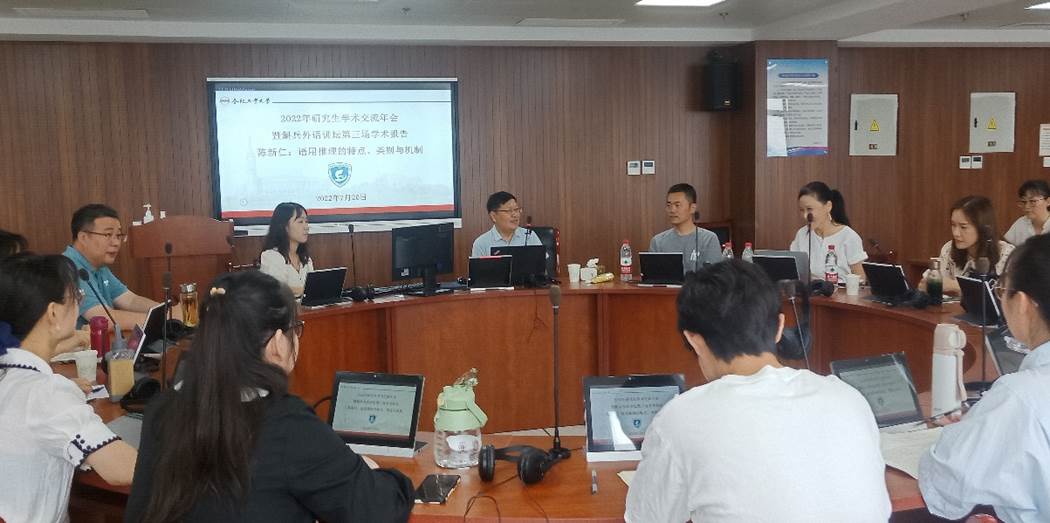 为更好地提升学院科研水平,为师生提供更多学术资源,002全讯白菜大全002cc白菜资讯于2022年7月20日星期三上午,在翡翠湖校区科教楼A1203会议室和腾讯会议室(515195806)同步举行了第三场学术报告。本次报告邀请了南京大学002cc白菜资讯博士生导师、中国语言战略研究中心执行主任陈新仁教授,报告主题“语用推理的特点、类别与机制”。002cc白菜资讯的师生参与了线下和线上的活动。