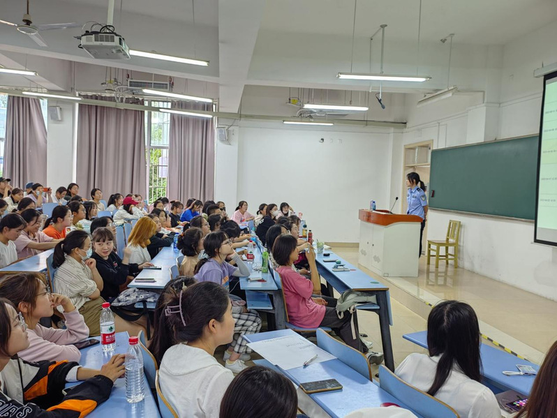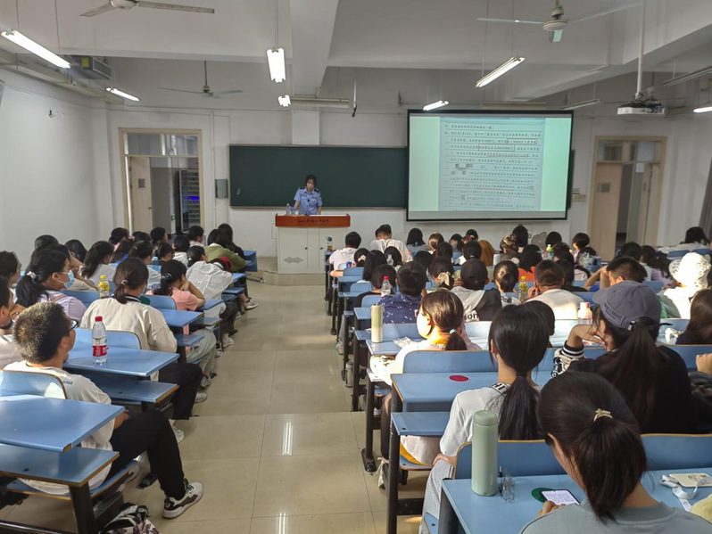 9月28日下午,002全讯白菜大全002cc白菜资讯开展了以“法治宣传进校园,筑牢反诈安全墙”为主题的防诈骗讲座,特邀经开分局刑警大队戴梦晗警官为学生讲解了“防骗指南”。