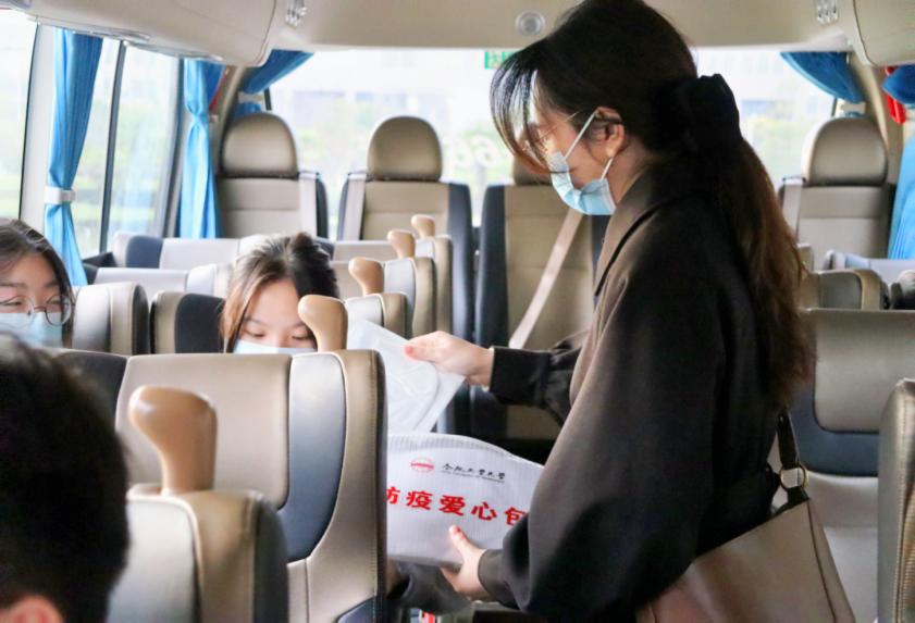 学院精准摸排考生信息,分类建立工作台账,全面掌握考试学生名单、考点设置、考试科目等信息。做好考生全程闭环式管理安排,组织协调3辆车辆,4位教师参与送考工作,分批次为考生提供“点对点”闭环往返接送服务,全面做好车辆调度和消杀工作,给学生一个安全、整洁、温馨的乘车环境。学生返校后按要求进行落地核酸与健康监测,确保考前、考中、考后各个环节疫情防控工作不留死角,严守校园疫情“零输入”。
