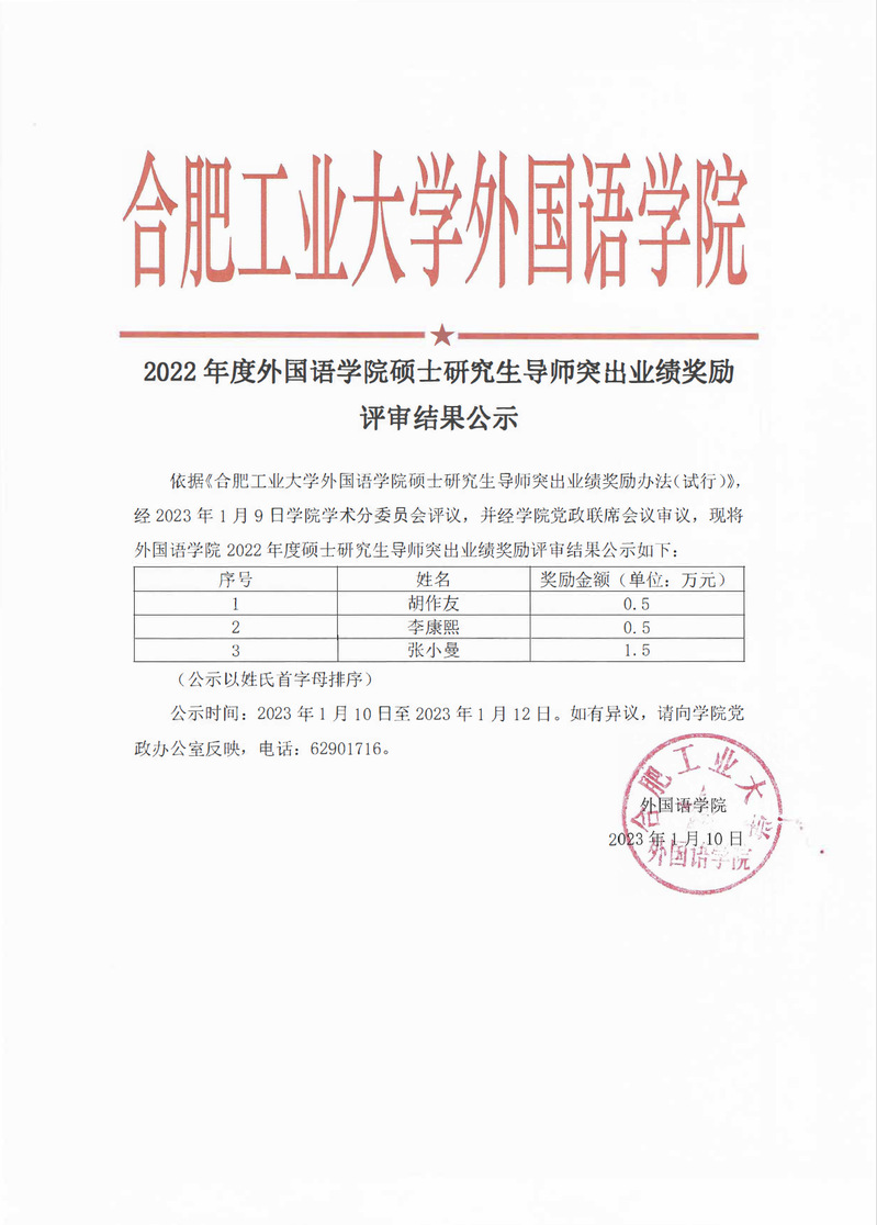 2022年度002cc白菜资讯硕士研究生导师突出业绩奖励评审结果公示