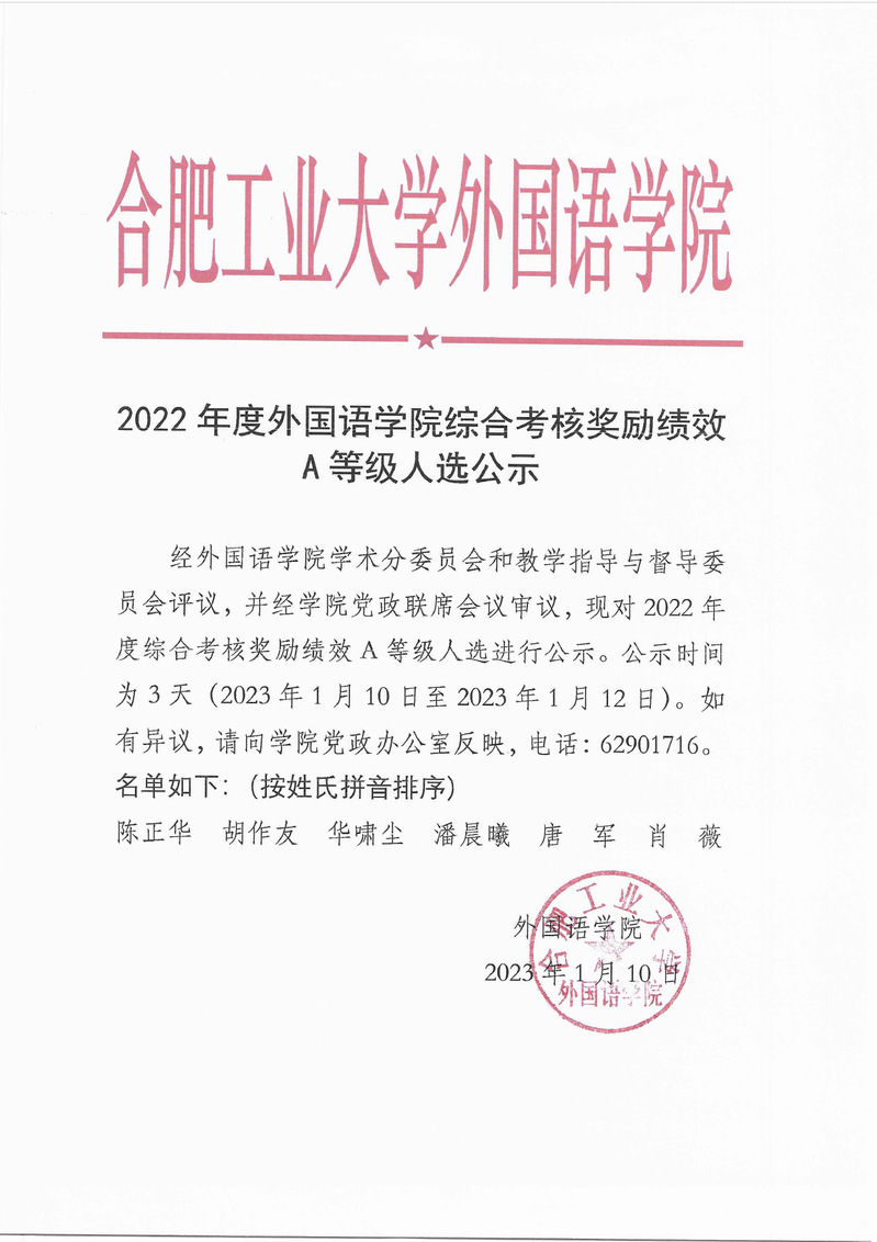 2022年度002cc白菜资讯综合考核奖励绩效A等级人选公示