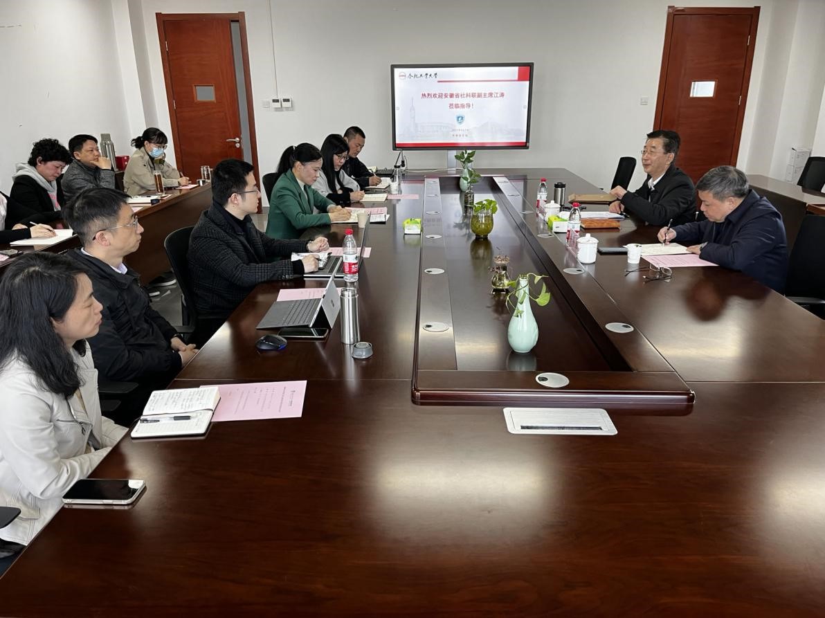4月7日上午,安徽省社科联党组成员、副主席江涛莅临002cc白菜资讯开展调研交流,校科研院副院长梁昌勇出席调研座谈会,002cc白菜资讯院长唐军主持座谈会。